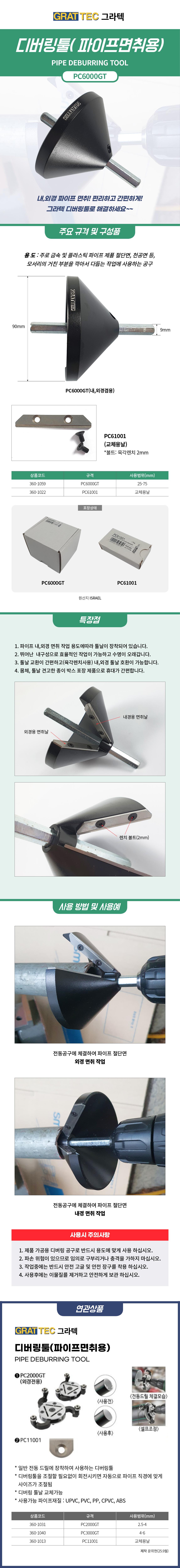 그라텍 파이프면취용 디버링툴 PC2000GT