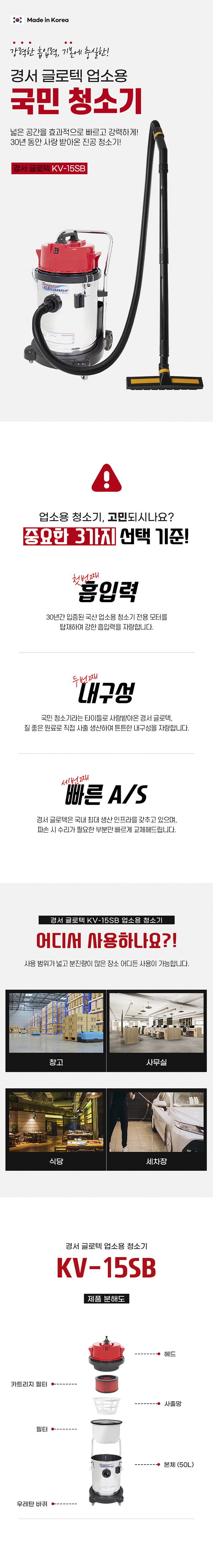 경서 건습식 진공청소기 50ℓ KV-15SB(W)
