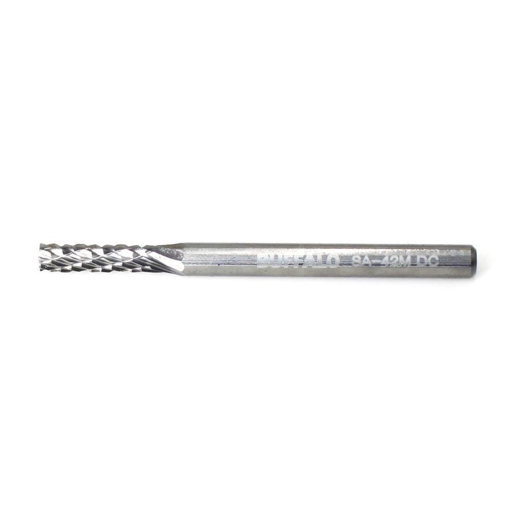 로타리바 》 금형그라인더에 체결되어 금형의 마무리, 가공, 용접후의 찌꺼기 제거등 다양한 용도로 사용되어지며 양쪽으로 날이 형성되어 있음.